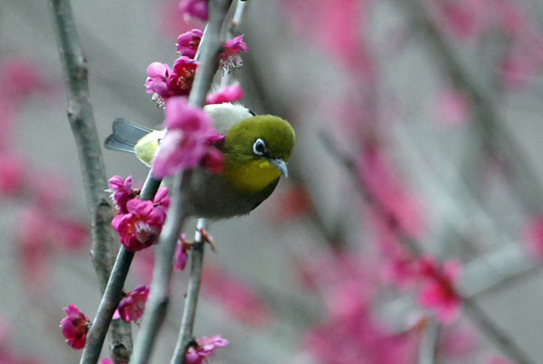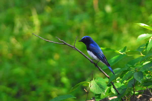 日本に夏鳥として渡来。 2008.5.21の午後、流れに懸かる 桜の枝に、 バサッと羽音をたててとまった。 直ぐに流れに降り、激しい水浴をして 飛び去った。 その間、時間にして50数秒。 |