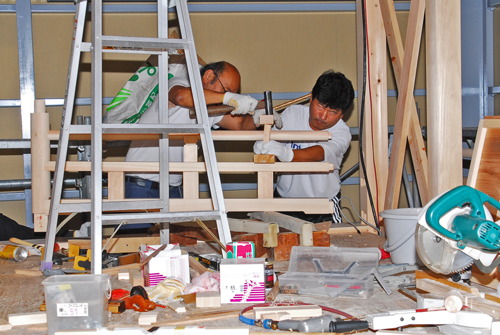 後部擬宝珠高欄は今日 組み立てられた。 H18.10.5 |